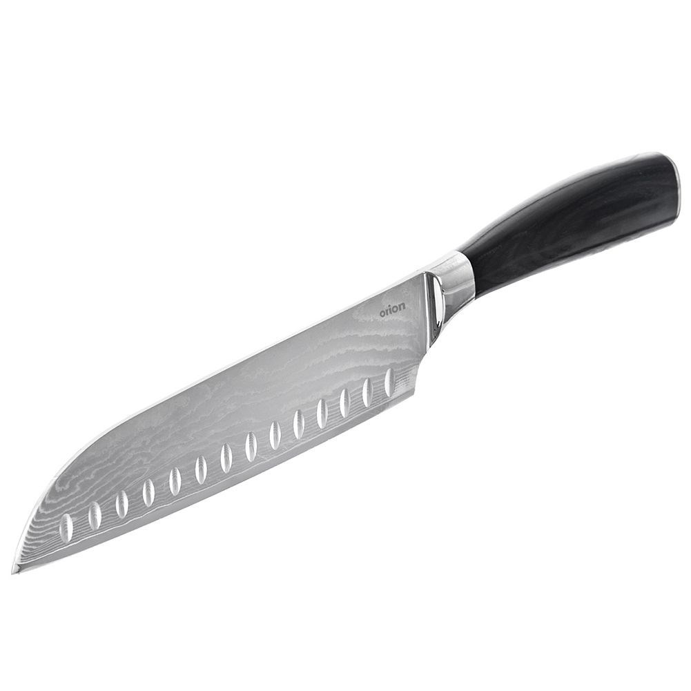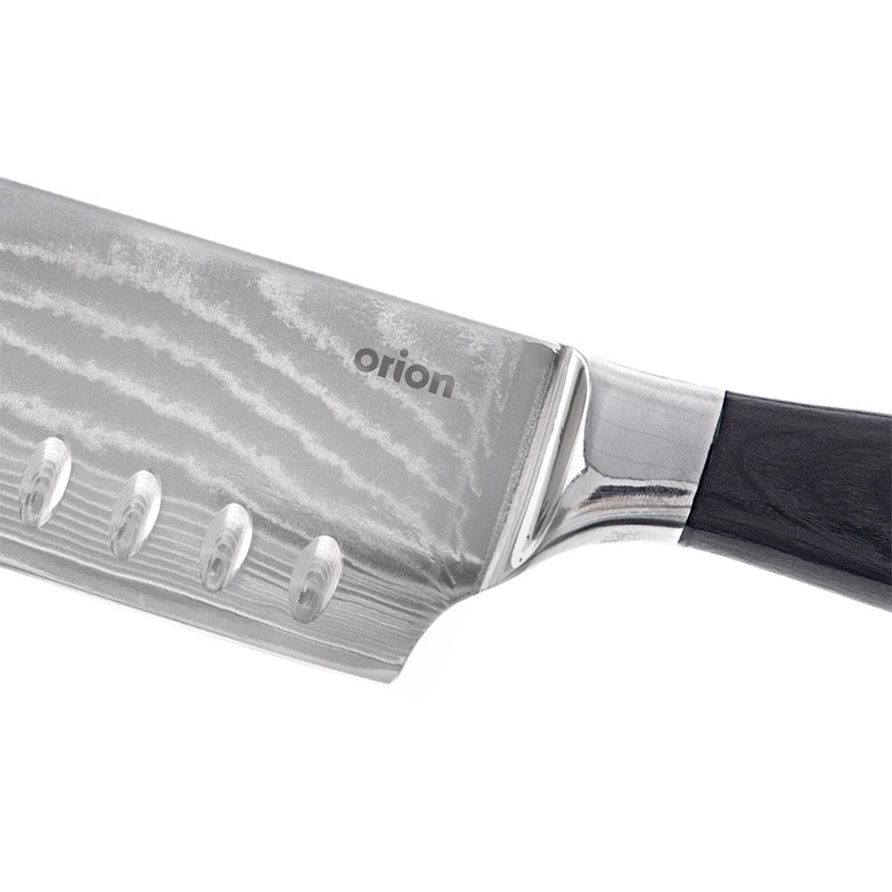 Nóż kuchenny typu Santoku przydatny w każdej kuchni, doskonale sprawdza się przy krojeniu, siekaniu i siekaniu różnorodnych składników. Odpowiednie wyprofilowanie oraz płaska powierzchnia ułatwiają precyzyjne cięcie, zapewniając wygodę i kontrolę podczas pracy w kuchni. Wyjątkowy design i wysoka jakość wykonania sprawiają, że odpowiednio użytkowany nóż posłuży długie lata. W celu odpowiedniej pielęgnacji, nie zaleca się mycia w zmywarce do naczyń. Oryginalny produkt czeskiej marki Orion. Wyprodukowano zgodnie z europejskimi standardami.