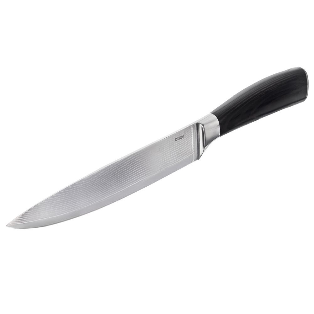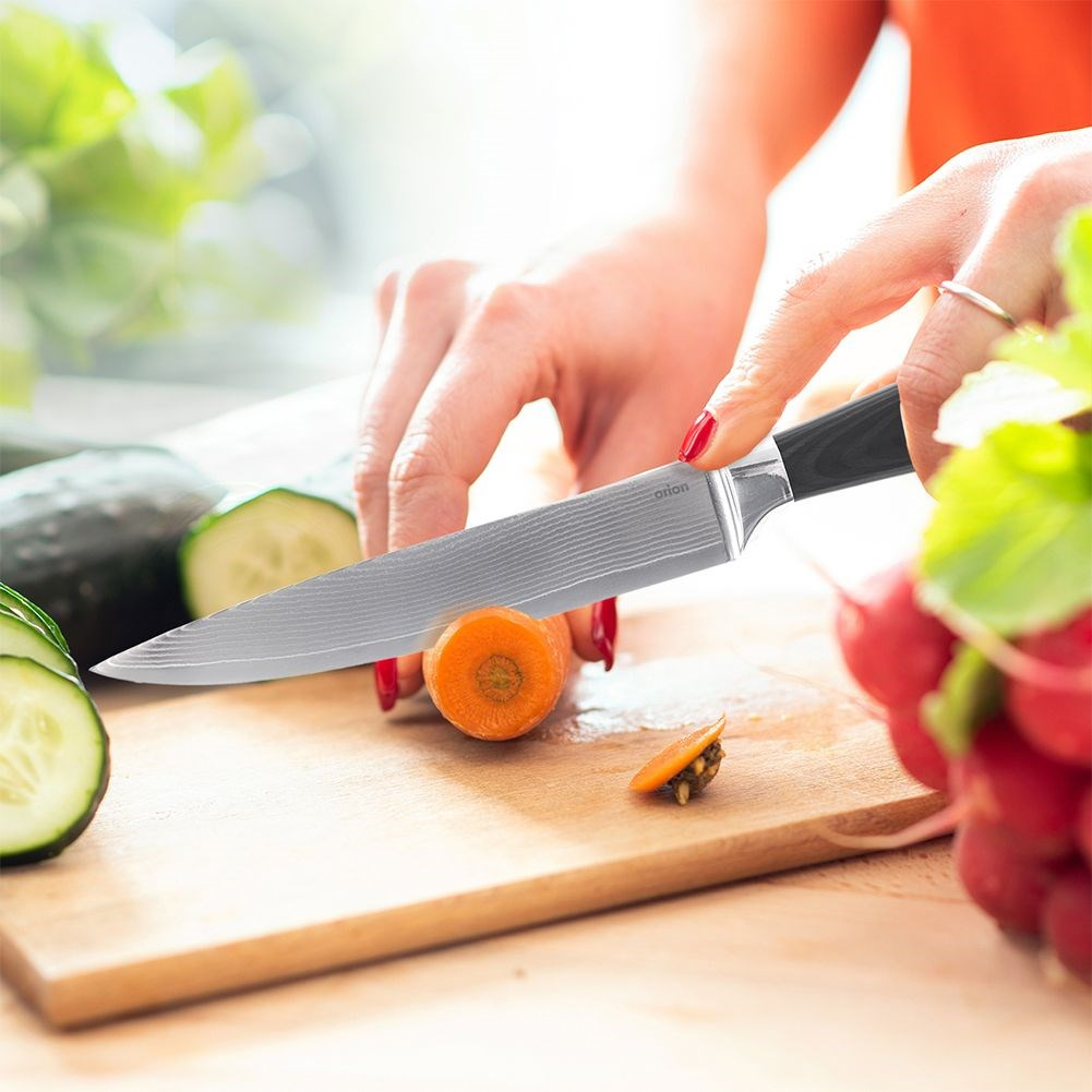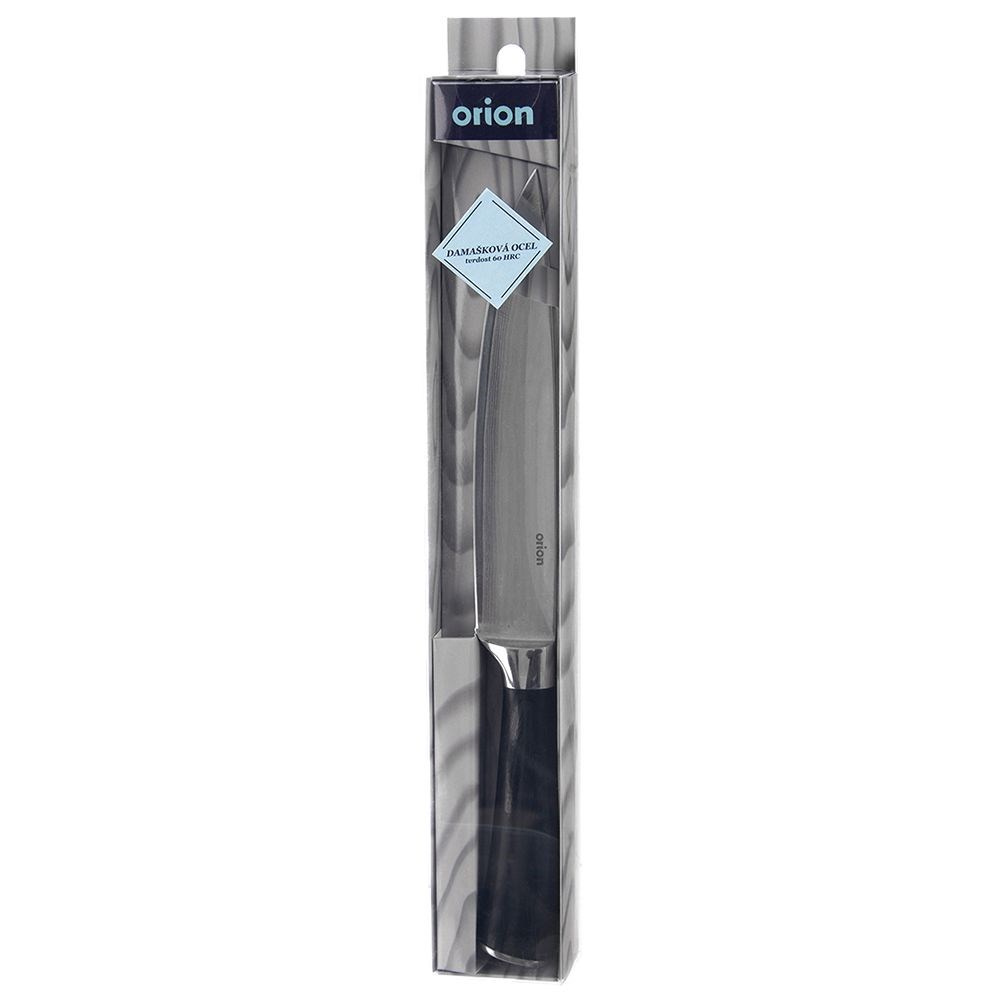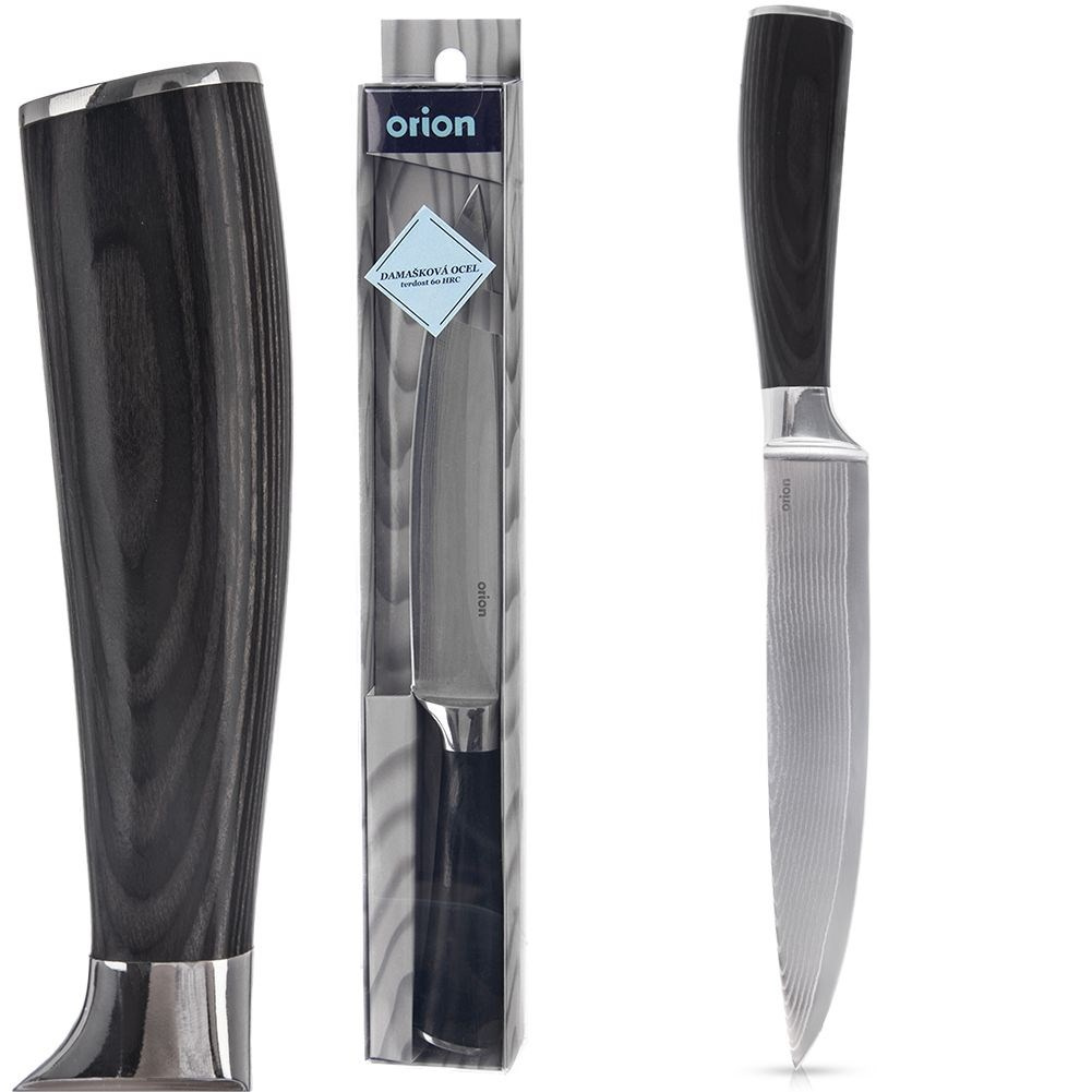 Uniwersalny nóż przydatny w każdej kuchni, doskonale sprawdza się przy krojeniu, siekaniu i siekaniu różnorodnych składników. solidnie wykonany z wytrzymałych materiałów. Wyjątkowy design i wysoka jakość wykonania sprawiają, że odpowiednio użytkowany nóż posłuży długie lata. W celu odpowiedniej pielęgnacji, nie zaleca się mycia w zmywarce do naczyń. Oryginalny produkt czeskiej marki Orion. Wyprodukowano zgodnie z europejskimi standardami.