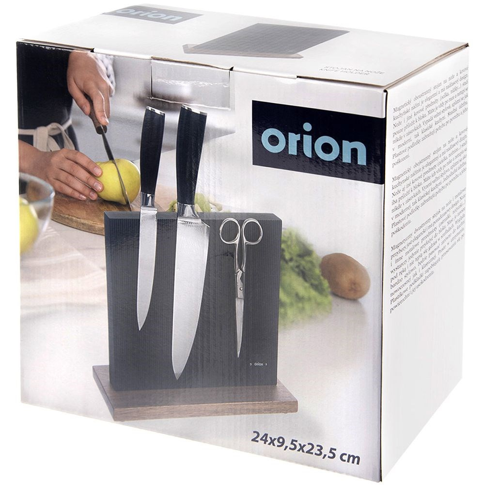 Dwustronny, magnetyczny stojak na noże kuchenne. Niezwykle efektowny, będzie ozdobą każdej kuchni, jednocześnie umożliwiając odpowiednie przechowywanie noży oraz akcesoriów kuchennych. Posiada nowoczesny design, dzięki czemu będzie pasował do kuchni w stylu nowoczesnym, ale również w stylu klasycznym. Oryginalny produkt marki czeskiej marki Orion. Wyprodukowano zgodnie z europejskimi standardami.