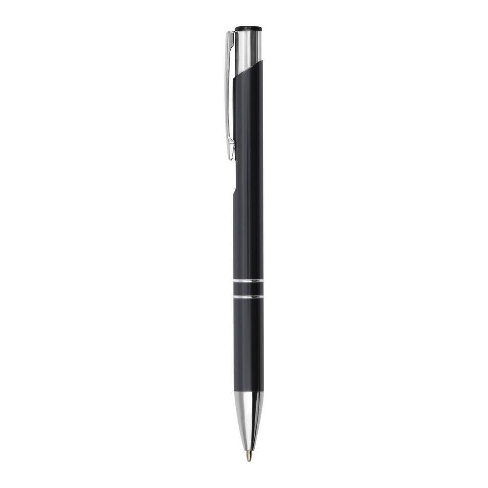 Długopis z kolorowym trzonem i srebrnymi elementami.