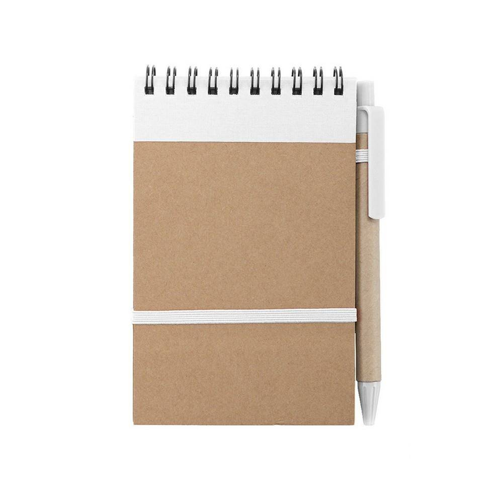 Notatnik (ok. A6, 70 kartek w linie) z długopisem, elastyczna opaska do zamykania, twarda okładka, spiralne bindowanie