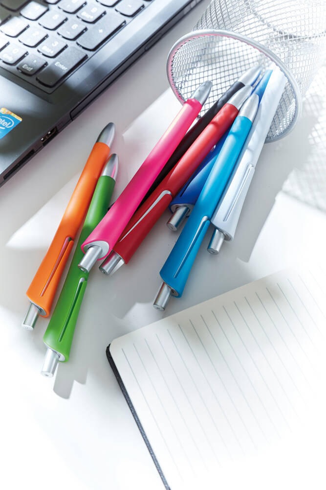 - posiada kolorowy akcent za klipsem.
