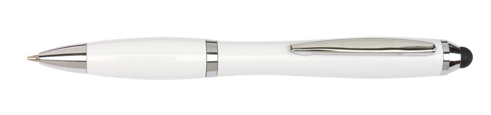 Długopis SWAY TOUCH z profilowanym korpusem, mechanizmem rotacyjnym, uchwytem pokrytym gumą i końcówką do ekranu dotykowego, z możliwością wymiany wkładu, tusz niebieski.