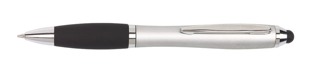 Długopis SWAY TOUCH z profilowanym korpusem, mechanizmem rotacyjnym, uchwytem pokrytym gumą i końcówką do ekranu dotykowego, z możliwością wymiany wkładu, tusz niebieski.