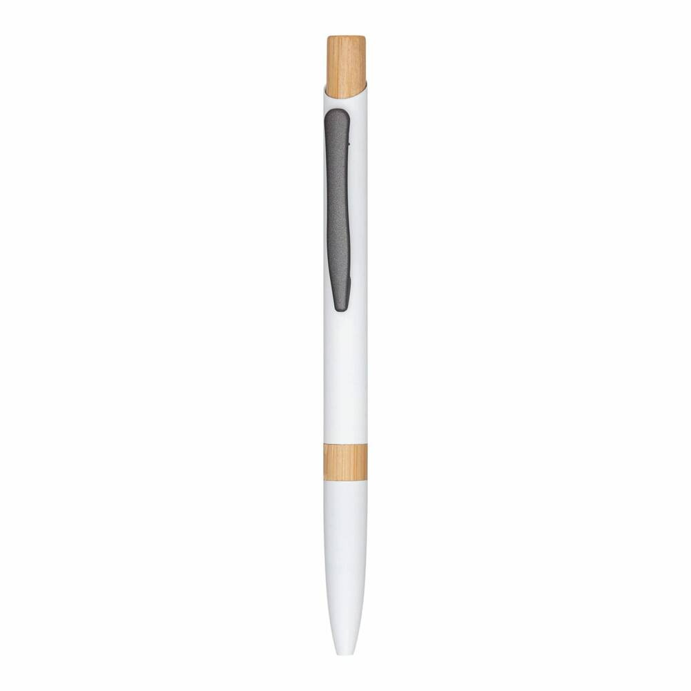 Aluminiowy długopis BAMBOO SYMPHONY: matowa metalowa obudowa, bambusowy pierścień w uchwycie i bambusowy przycisk, mechanizm naciskowy, duży wkład z niebieskim tuszem