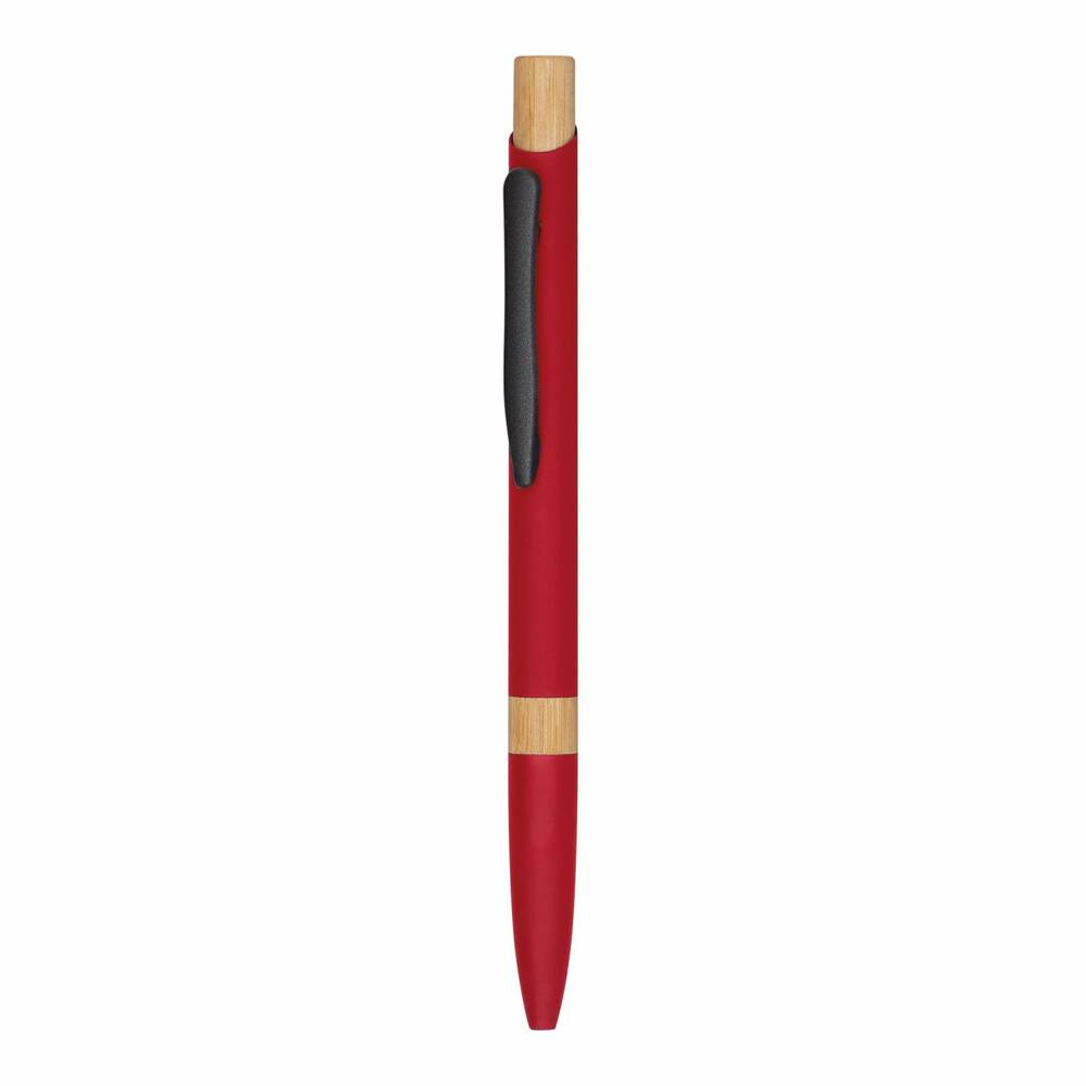 Aluminiowy długopis BAMBOO SYMPHONY: matowa metalowa obudowa, bambusowy pierścień w uchwycie i bambusowy przycisk, mechanizm naciskowy, duży wkład z niebieskim tuszem