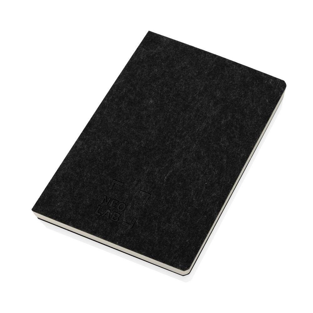 Notatnik (96 białych kartek 80 g/m2 w linie), wykonany z materiałów pochodzących z recyklingu z certyfikatem GRS, całkowita zawartość materiałów z recyklingu obliczona na podstawie wagi całkowitej przedmiotu: 99%