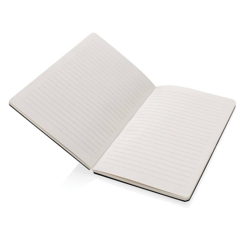 Notatnik (96 białych kartek 80 g/m2 w linie), wykonany z materiałów pochodzących z recyklingu z certyfikatem GRS, całkowita zawartość materiałów z recyklingu obliczona na podstawie wagi całkowitej przedmiotu: 99%
