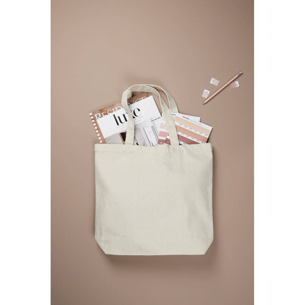 Torba na zakupy, wykonana w 70% z bawełny pochodzącej z recyklingu i w 30% z poliestru z recyklingu o gramaturze 400 g/m2, posiada wbudowany znacznik