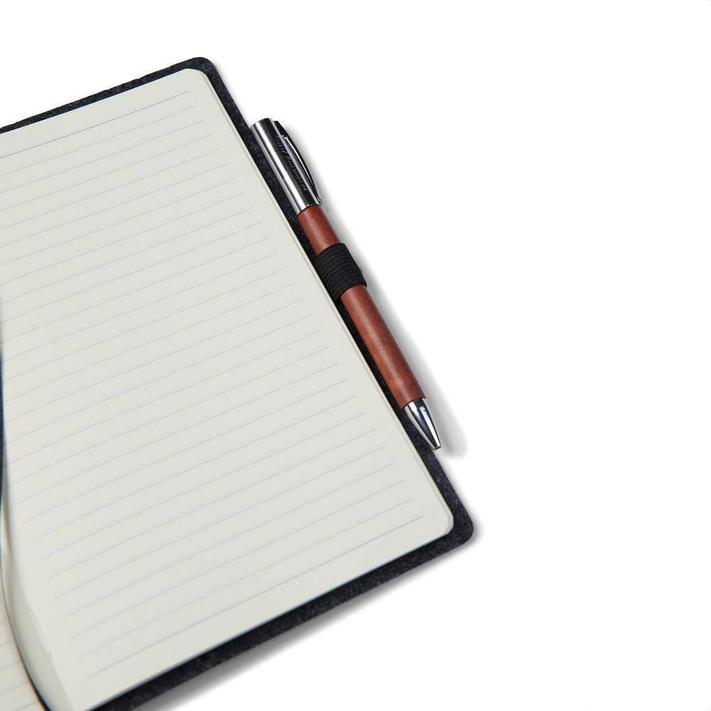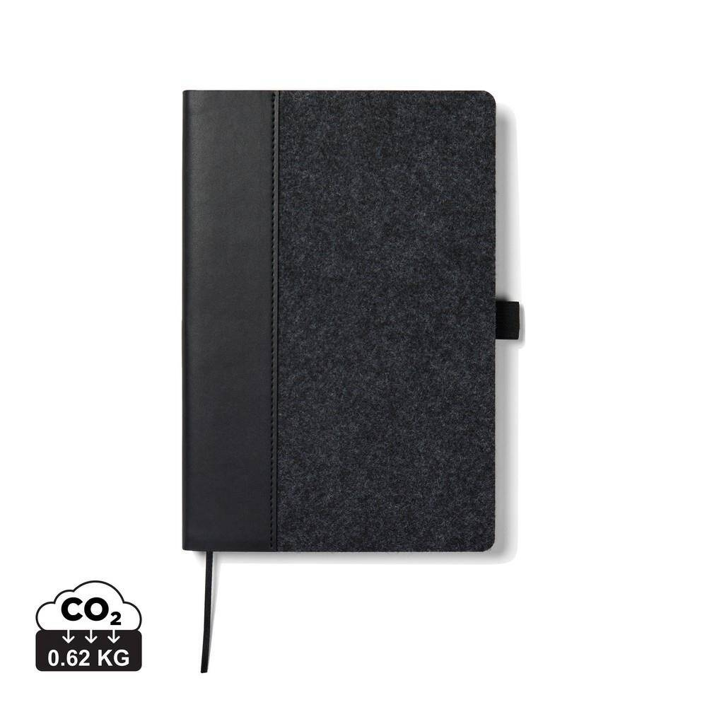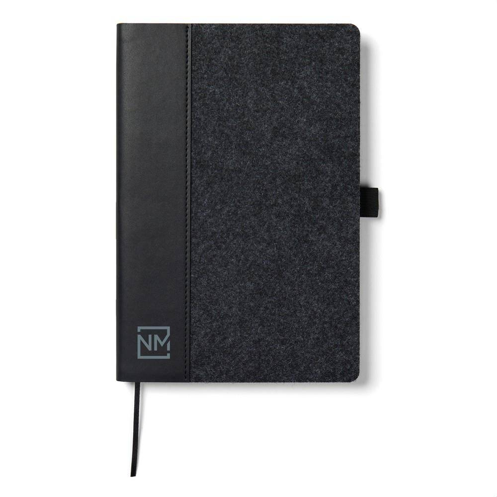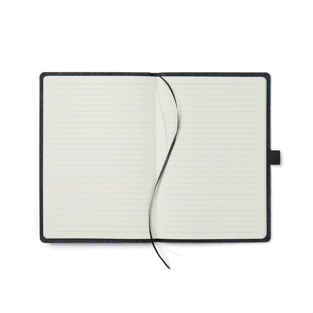 Notatnik A5 (80 kartek w linie o gramaturze 70 g/m2), wykonany z filcu z recyklingu, wnętrze z papieru makulaturowego