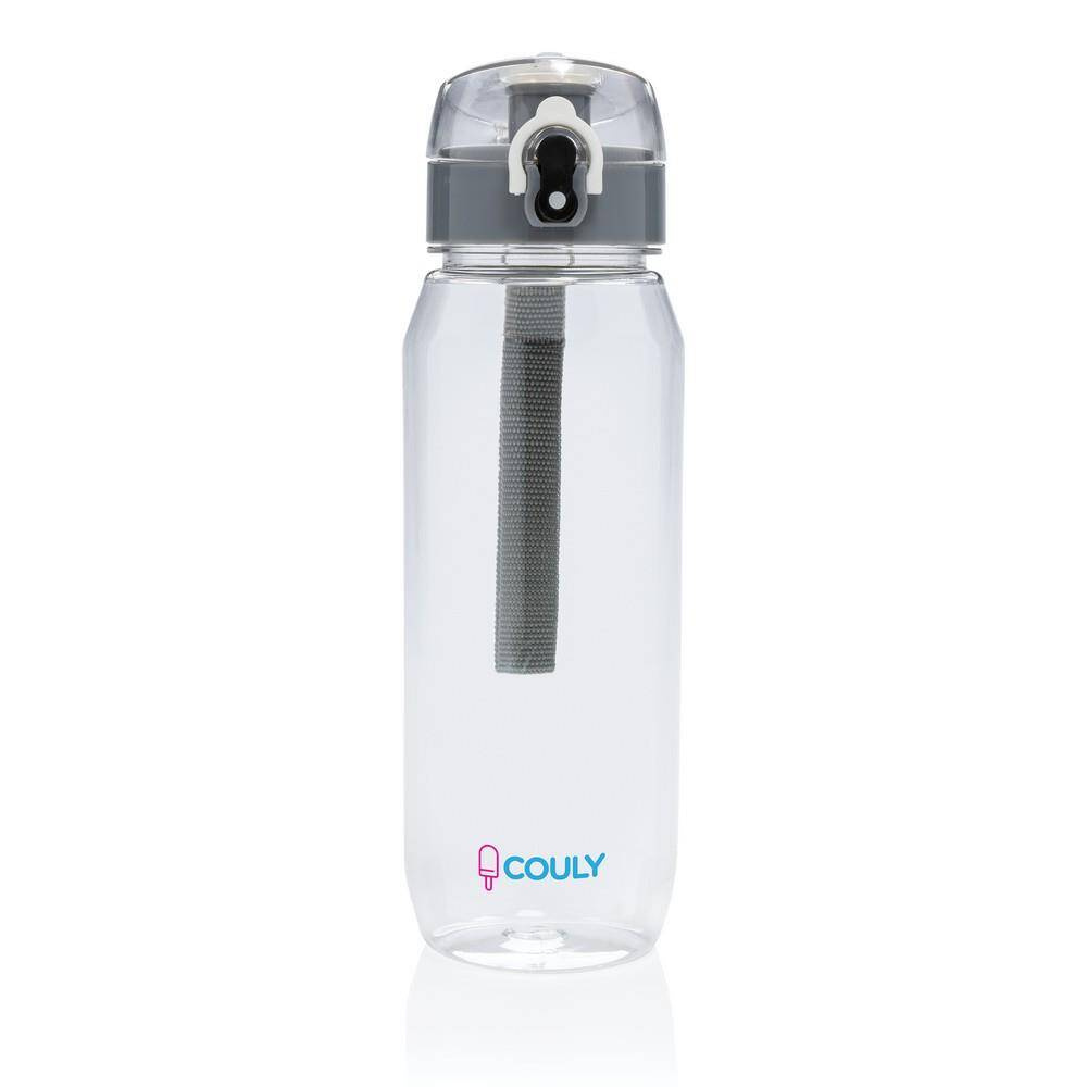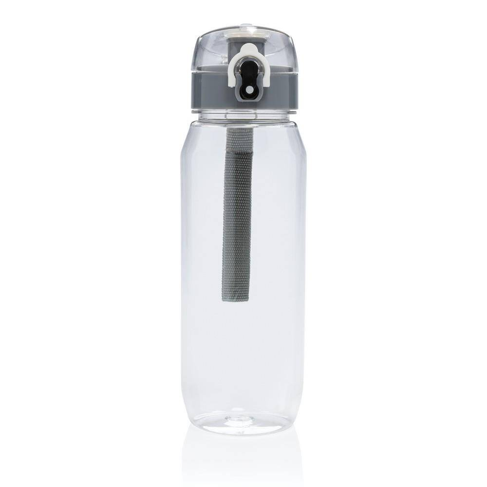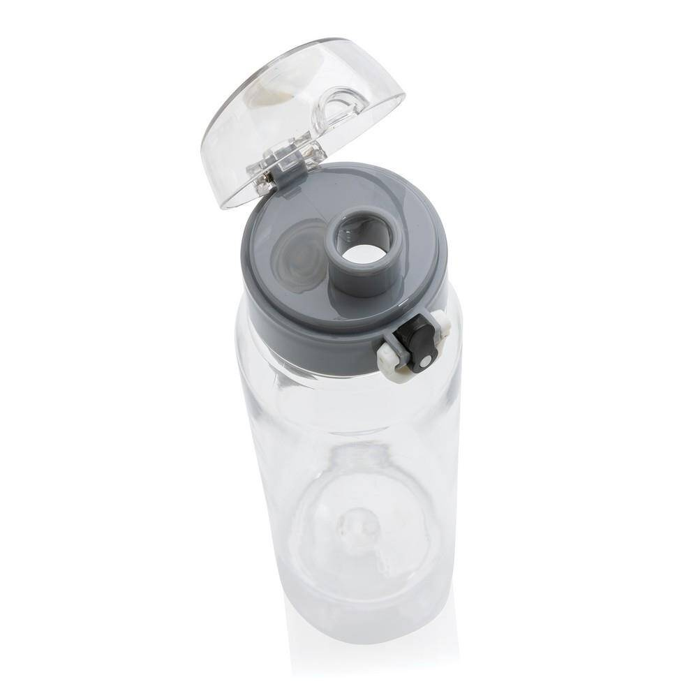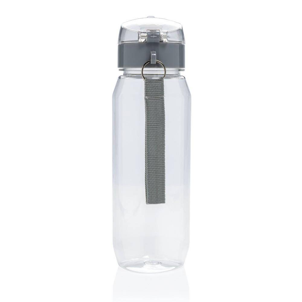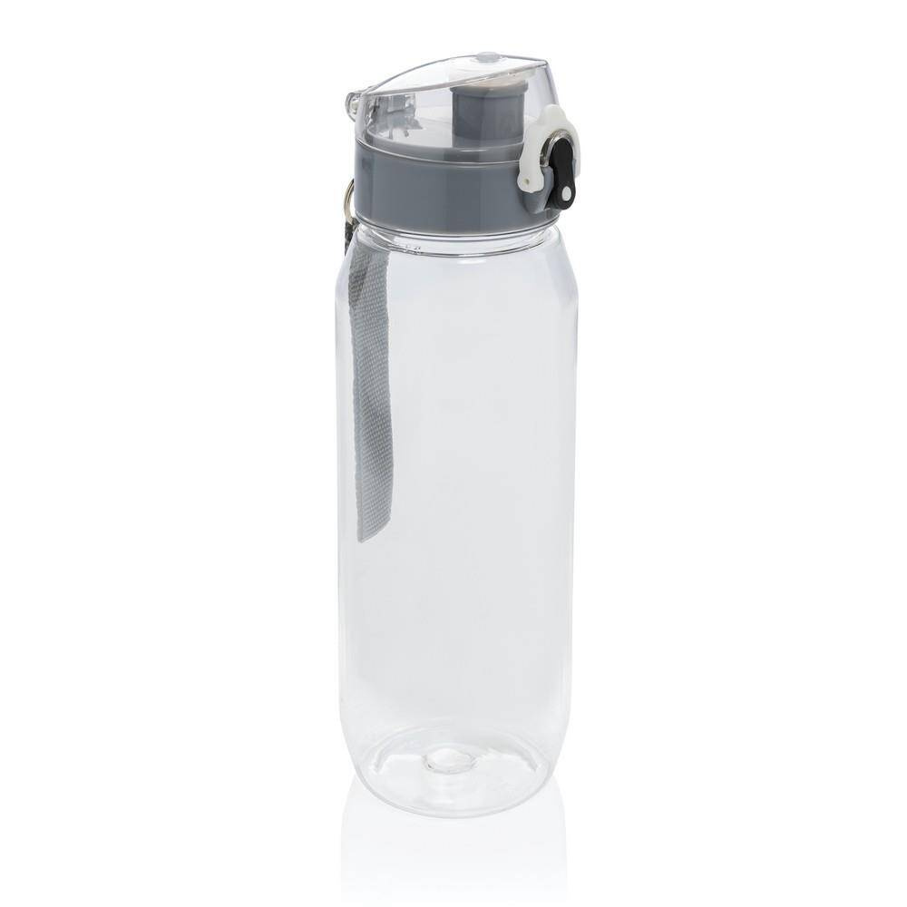 Butelka sportowa 800 ml, uchwyt, wykonana z RPET, nie wymaga obsługi oburącz, całkowita zawartość materiałów z recyklingu obliczona na podstawie wagi