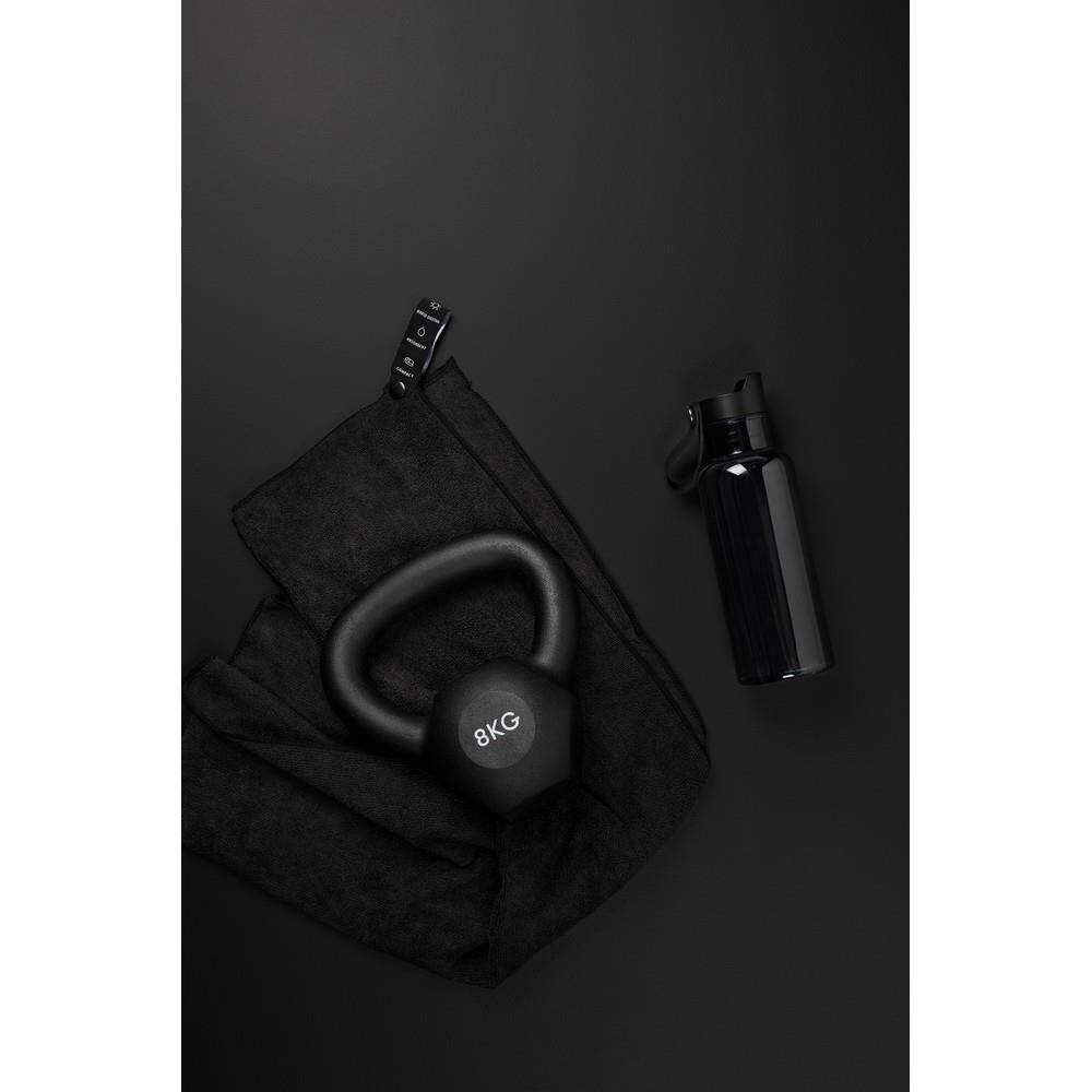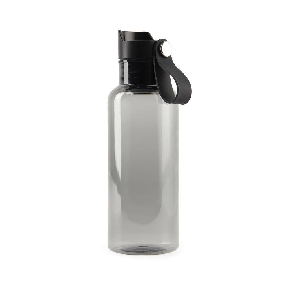 Butelka sportowa 600 ml, wykonana z RPET, całkowita zawartość materiałów z recyklingu obliczona na podstawie wagi całkowitej przedmiotu: 63%, nadaje się wyłącznie do zimnych napojów, zalecane mycie ręczne, w pudełku z papieru kraftowego z certyfikatem FSC.