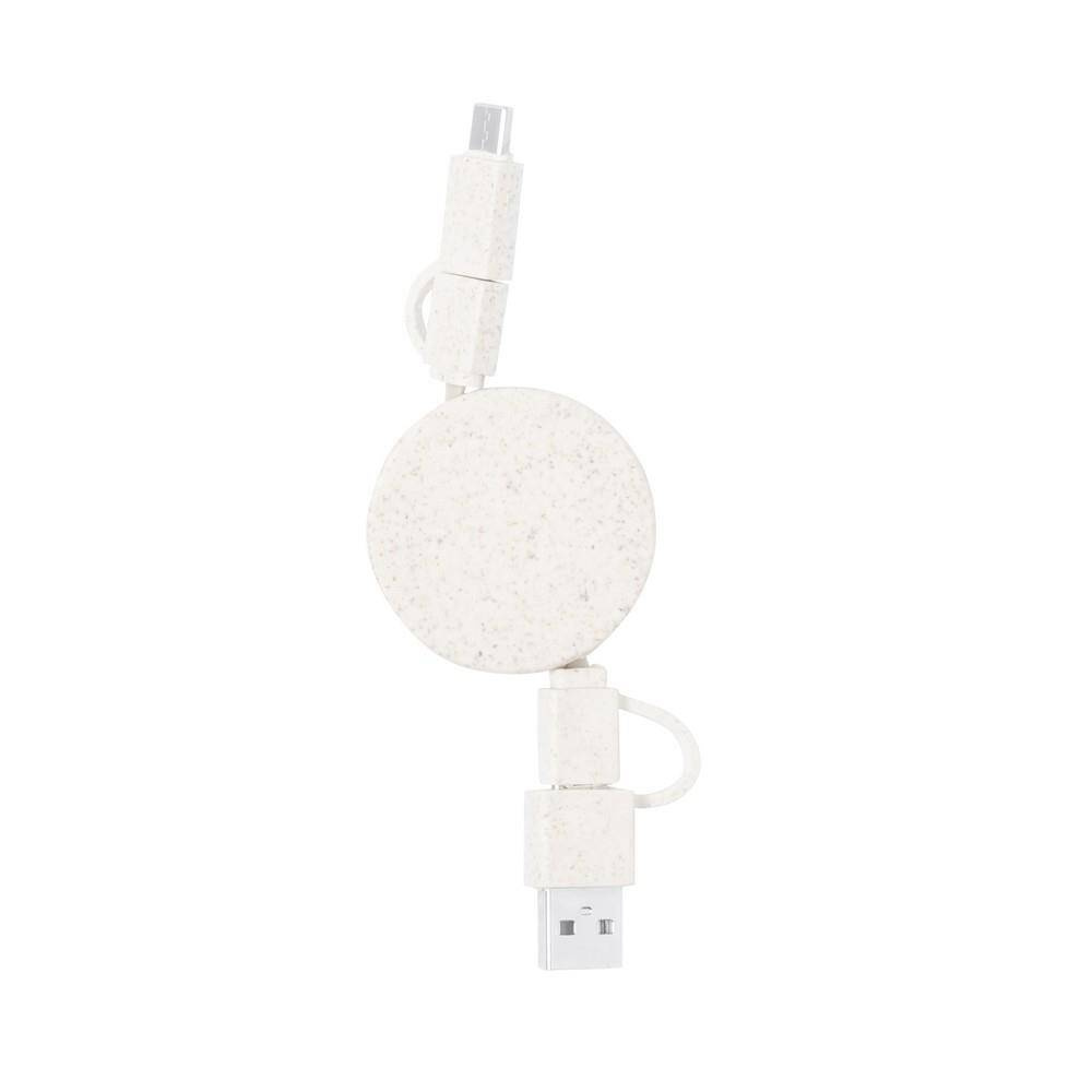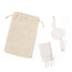 Zestaw podróżny do ładowania z włókien słomy pszenicznej, zwijany kabel do ładowania i synchronizacji z 4 końcówkami: USB, micro USB, USB typu C oraz końcówką kompatybilną z urządzeniami iOS, ładowarka ścienna z portem USB oraz USB typu C, bawełniany pokrowiec w komplecie