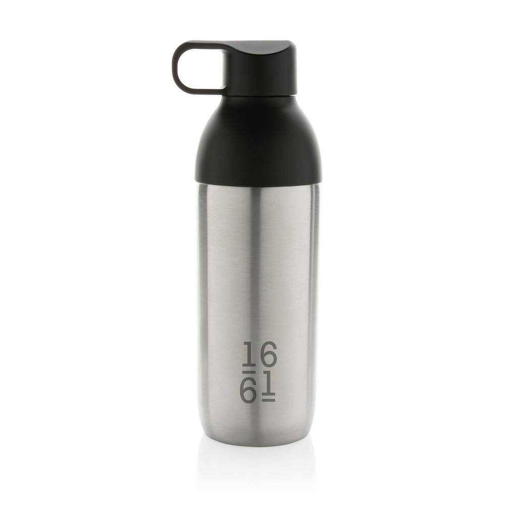Butelka termiczna 540 ml, podwójne ścianki z próżnią pomiędzy, utrzymuje temperaturę napojów ciepłych do 5 godzin oraz zimnych do 15 godzin, wykonana ze stali nierdzewnej z recyklingu z certyfikatem RSC (Recycled Claim Standard) który gwarantuje, że wykorzystane materiały pochodzą z recyklingu, całkowita zawartość materiału z recyklingu obliczona w oparciu o wagę całkowitą przedmiotu: 75%, w pudełku z papieru kraftowego z certyfikatem FSC® (Forest Stewardship Council), wzór zastrzeżony®