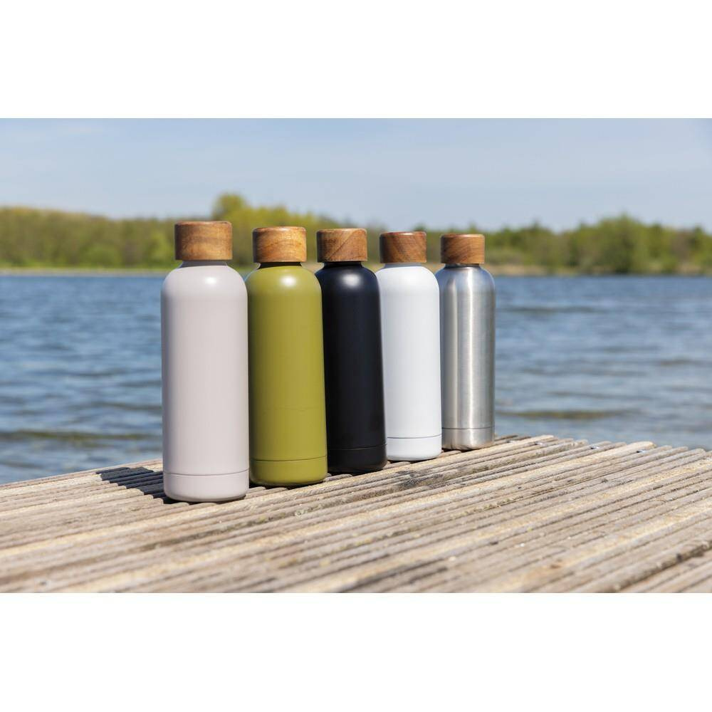 Butelka termiczna 500 ml, podwójne ścianki z próżnią pomiędzy, utrzymuje temperaturę napojów ciepłych do 5 godzin oraz zimnych do 15 godzin, wykonana ze stali nierdzewnej z recyklingu z certyfikatem RSC (Recycled Claim Standard) który gwarantuje, że wykorzystane materiały pochodzą z recyklingu, całkowita zawartość materiału z recyklingu obliczona w oparciu o wagę całkowitą przedmiotu: 88%, w pudełku z papieru kraftowego