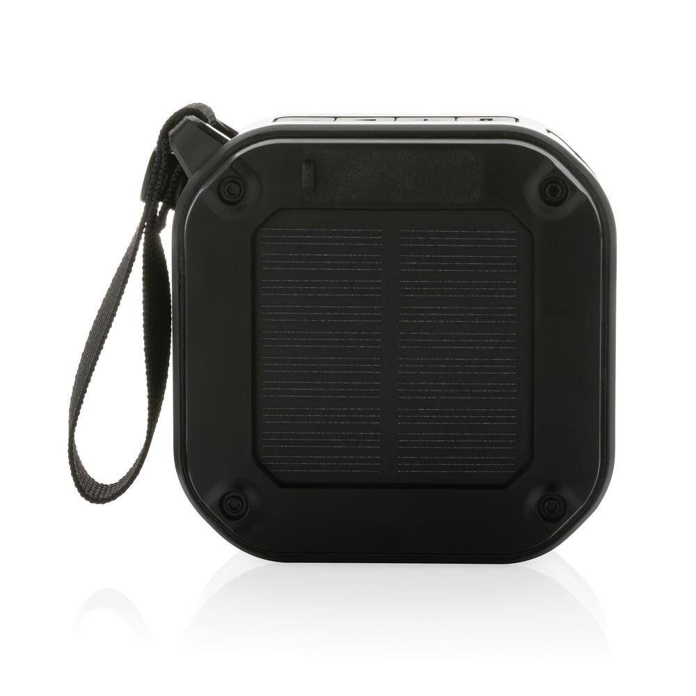 Głośnik bezprzewodowy 3W BT5.3, zintegrowany panel słoneczny do ładowania głośnika o współczynniku konwersji 19%, wbudowany mikrofon, funkcja odbierania połączeń, zintegrowana lampka LED o mocy 30 lm, wbudowany akumulator o pojemności 400 mAh pozwala na odtwarzanie muzyki do 5 godzin, zasięg do 10 m, wykonany z ABS z recyklingu z certyfikatem RCS, całkowita zawartość materiałów z recyklingu obliczona na podstawie wagi całkowitej przedmiotu: 38%, kabel z TPE z recyklingu w komplecie, w pudełku z papieru kraftowego z certyfikatem FSC® mix