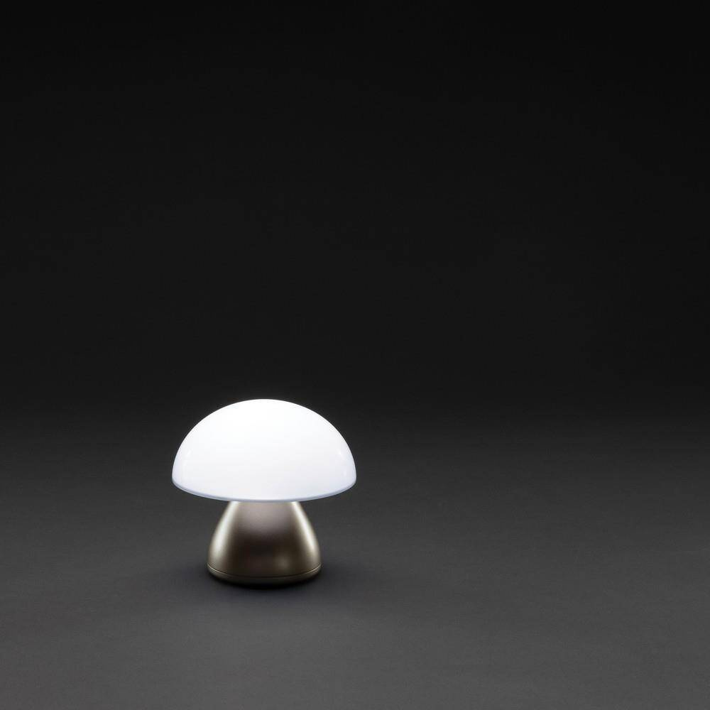 Lampka na biurko, 2 tryby świecenia, przycisk dotykowy w podstawie, wbudowany akumulator pozwala na świecenie do 5 godzin na jednym ładowaniu, ponowne ładowanie w 2 godziny, wejście USB typu C do ładowania, wykonana z ABS i aluminium z recyklingu z certyfikatem RCS, całkowita zawartość materiałów z recyklingu obliczona w oparciu o wagę całkowitą przedmiotu: 42%, w pudełku z papieru kraftowego z certyfikatem FSC® mix