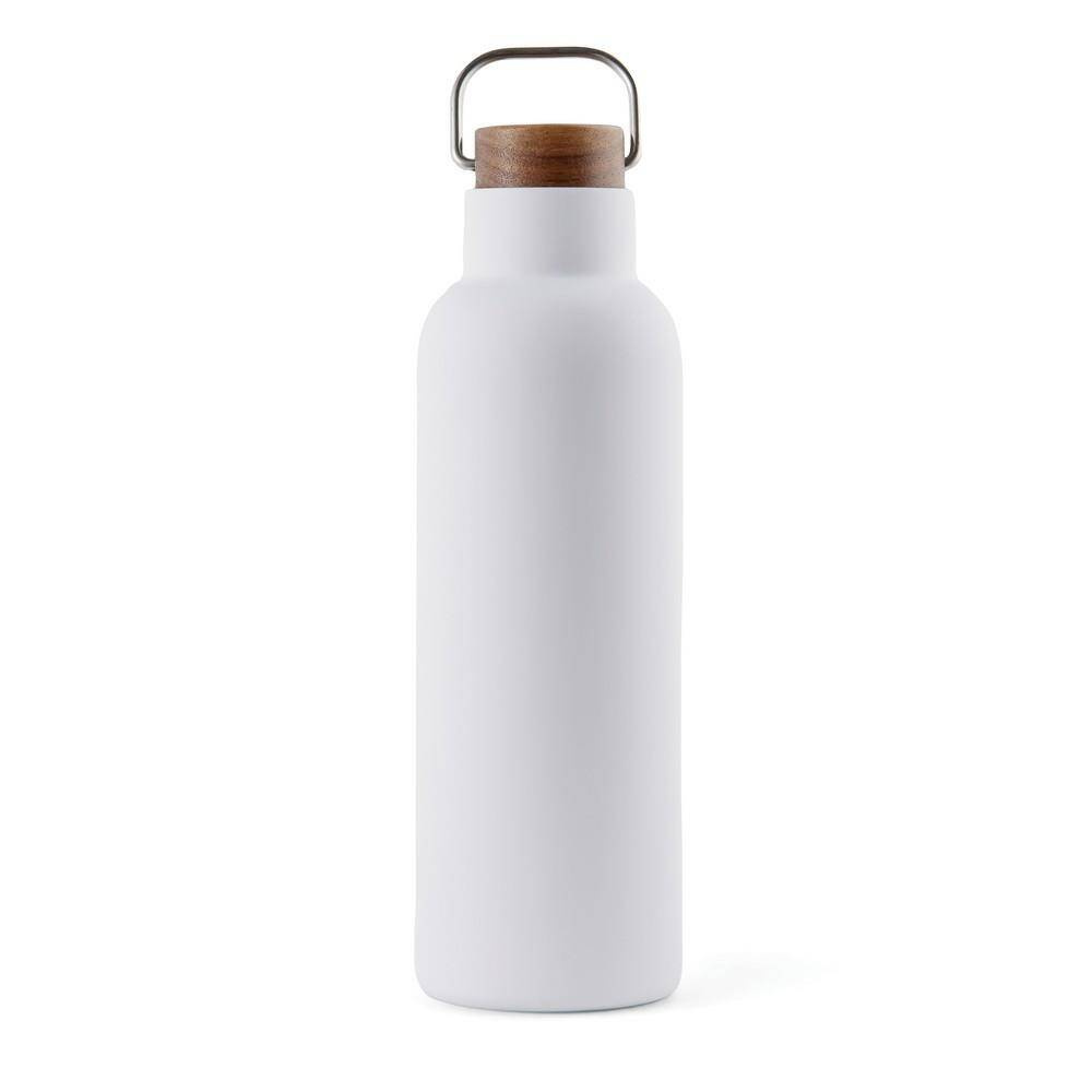 Butelka termiczna 800 ml, podwójne ścianki ze stali nierdzewnej z próżnią pomiędzy, wykonana ze stali nierdzewnej z recyklingu z certyfikatem RCS, drewniane wieczko z uchwytem, całkowita zawartość materiałów z recyklingu obliczona na podstawie wagi całkowitej przedmiotu: 79%, wyłącznie mycie ręczne, w pudełku z papieru kraftowego z certyfikatem FSC®