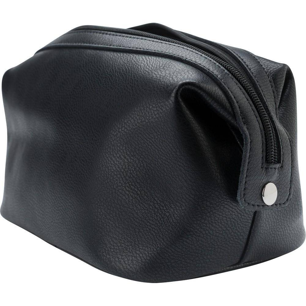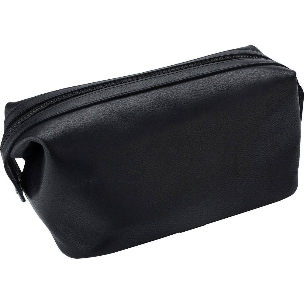 Kosmetyczka, wykonana ze skóry, główna przegroda na zamek błyskawiczny, kieszenie wewnętrzne, 2 guziki po bokach do stabilizowania kosmetyczki