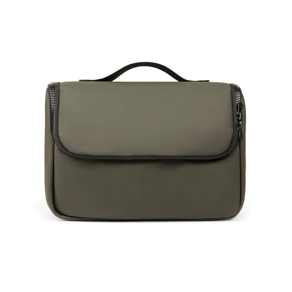 Kosmetyczka, wykonana z wodoodpornego nubuku i PU, mniejsze kieszenie wewnątrz, posiada haczyk do zawieszenia, łatwa w czyszczeniu