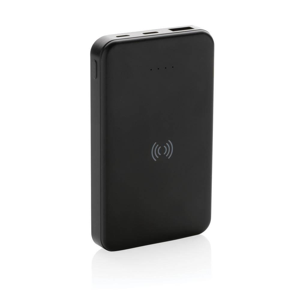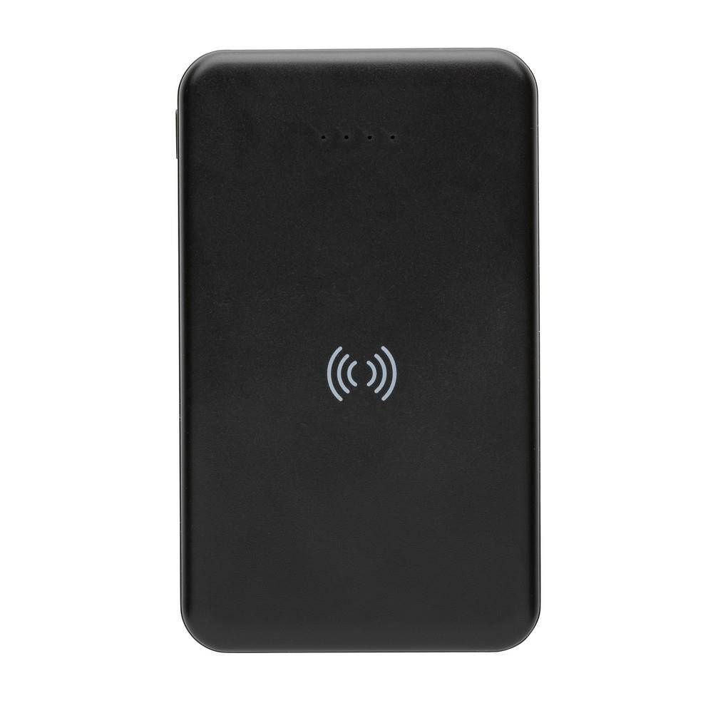 Bezprzewodowy power bank 5000 mAh, ładowarka bezprzewodowa 5W, diody wskazujące poziom naładowania, wykonany z ABS z recyklingu z certyfikatem RCS, całkowita zawartość materiałów z recyklingu obliczona na podstawie wagi całkowitej przedmiotu: 26%, wbudowany akumulator litowo polimerowy o dużej gęstości, wejście micro USB 5V/2A, wejście USB typu C 5V/2.4A, wyjście USB typu C 5V/2.4A, wyjście USB 5V/2.4A, kabel z TPE z recyklingu z certyfikatem RCS w komplecie, w pudełku z papieru kraftowego z certyfikatem FSC® mix