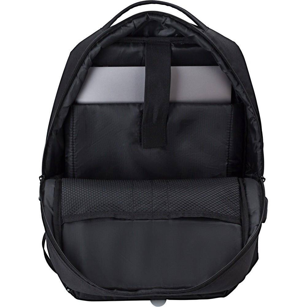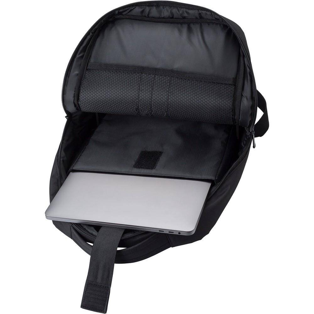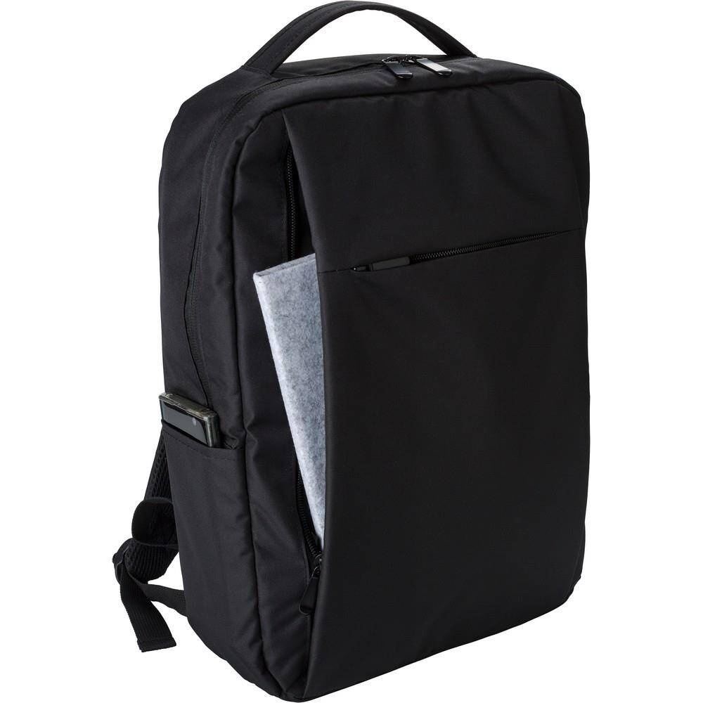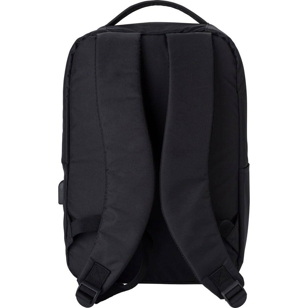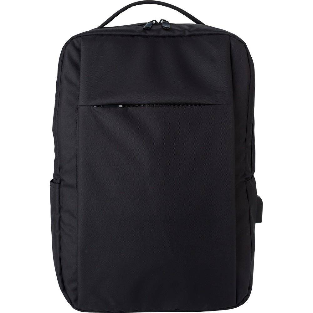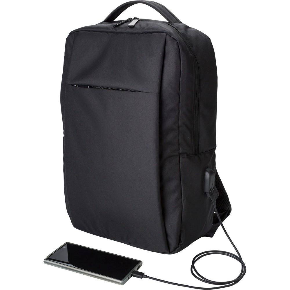 Plecak na laptopa 16", wykonany z RPET, przegroda główna i kieszeń przednia na zamek błyskawiczny, miękka przegroda na laptopa, różne przegrody w środku, zintegrowany port USB do ładowania telefonów (power-bank nie jest dołączony), boczna kieszeń, regulowane paski na ramię