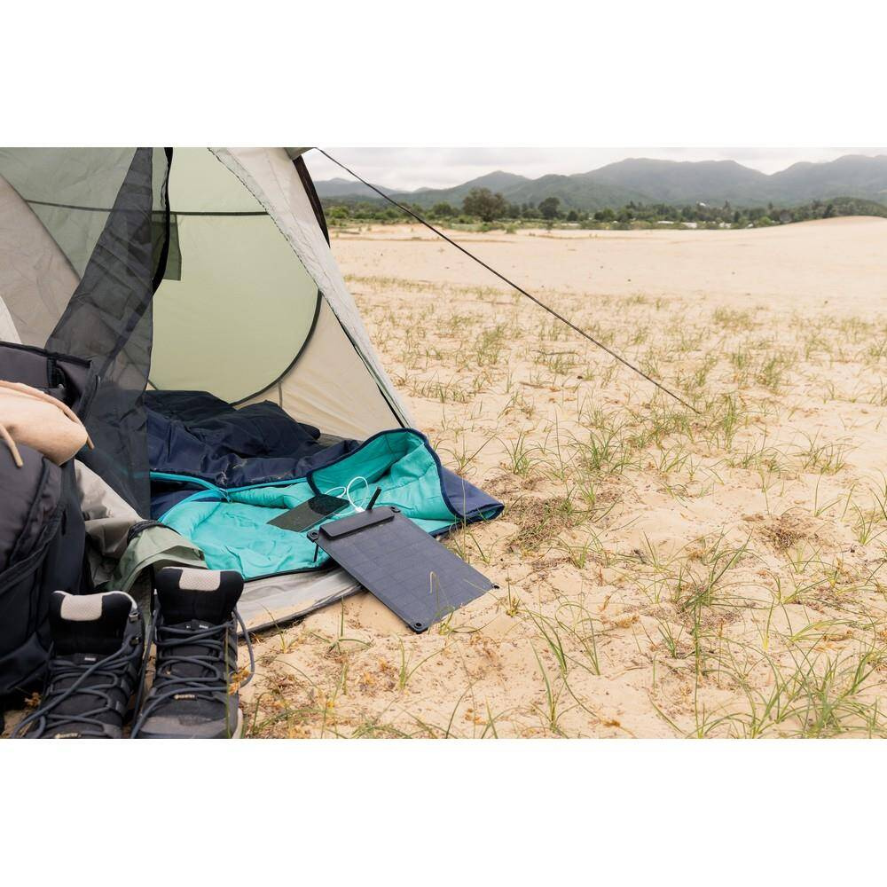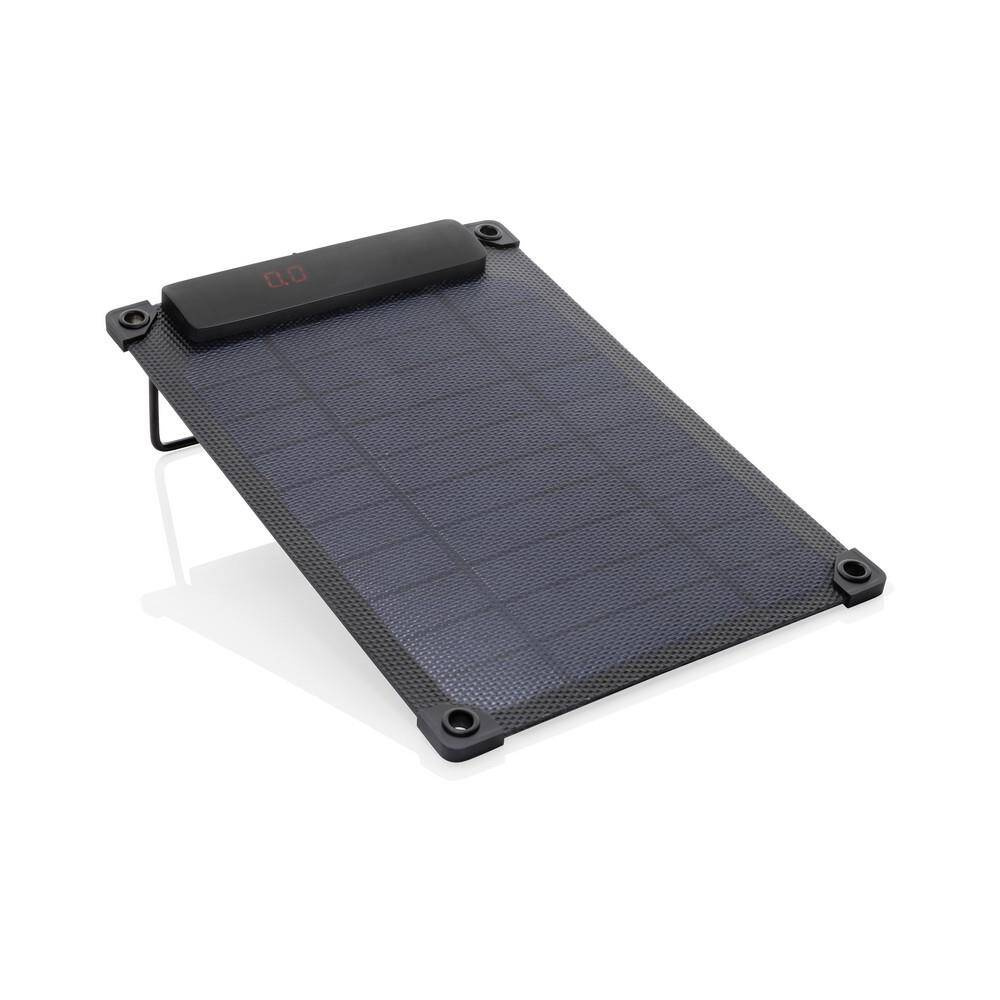 Panel słoneczny 5W, wskaźnik prędkości ładowania, stojak, wodoodporny IPX6, wyjścia USB i USB typu C (5V/1A max.), wykonany z PET i ABS z recyklingu, w pudełku z papieru kraftowego z certyfikatem FSC®