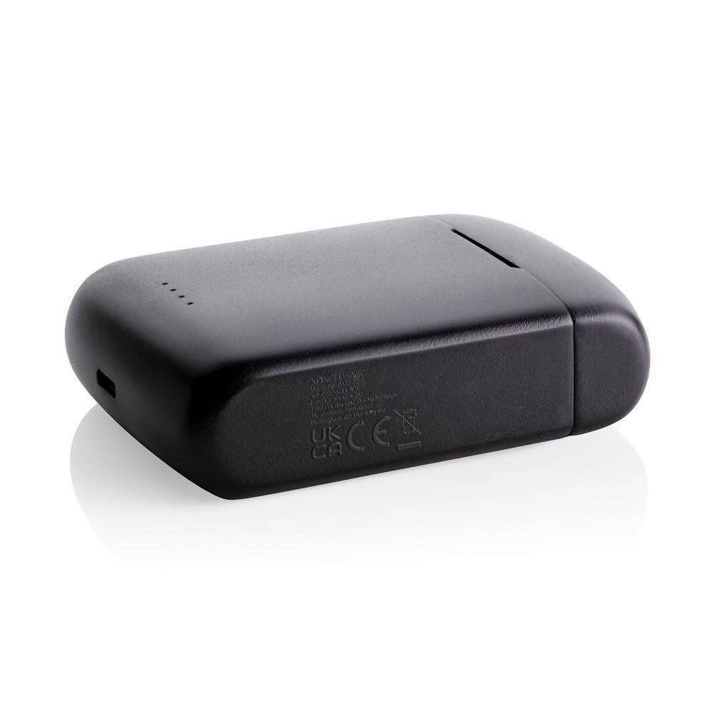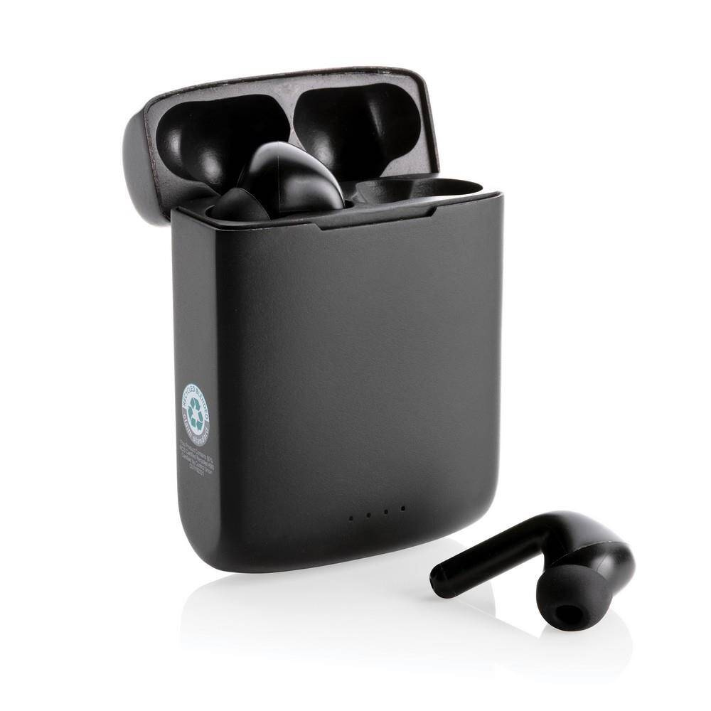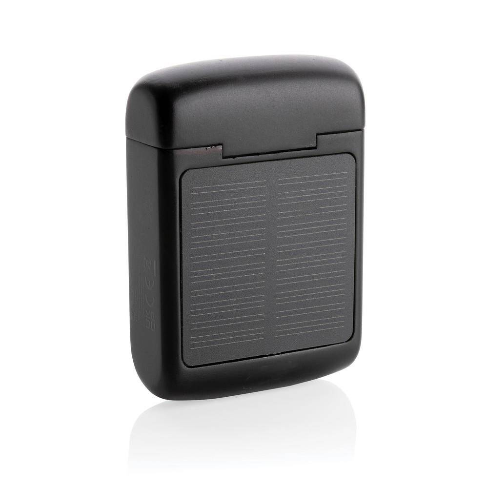 Słuchawki bezprzewodowe BT 5.3, zintegrowany panel słoneczny do ładowania słuchawek, prędkość ładowania solarnego 5V/0,05A, wbudowany mikrofon, funkcja odbierania połączeń, wykonane z ABS z recyklingu z certyfikatem RCS, całkowita zawartość materiałów z recyklingu obliczona w oparciu o wagę całkowitą przedmiotu: 19%, czas odtwarzania na średnim poziomie głośności do 5 godzin, zasięg do 10 m, kabel z TPE z recyklingu z certyfikatem RCS w komplecie, w pudełku z papieru kraftowego z certyfikatem FSC® mix
