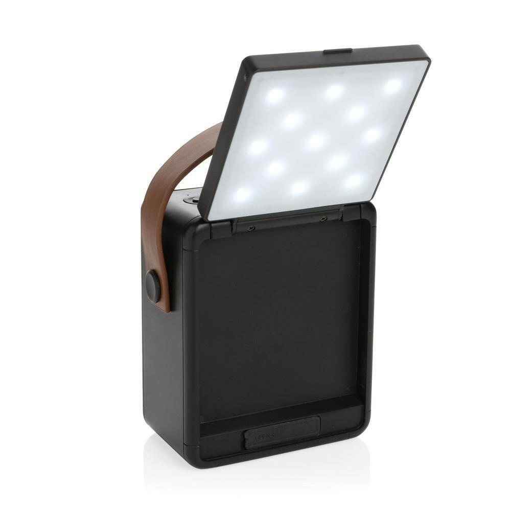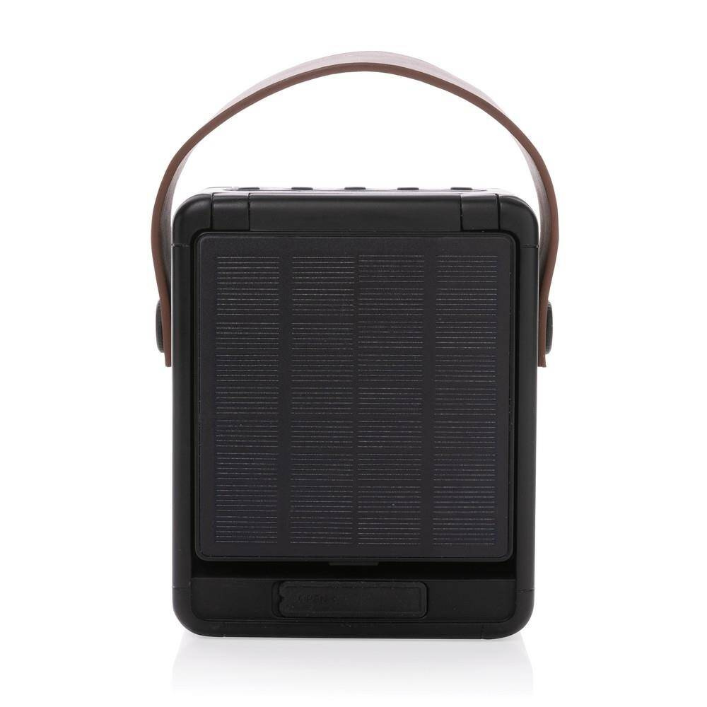 Głośnik bezprzewodowy 12W, BT 5.3, zintegrowany panel słoneczny do ładowania głośnika, lampka LED, prędkość ładowania solarnego 5V/0.3A, wbudowany mikrofon, funkcja odbierania połączeń, wbudowany akumulator o pojemności 2000 mAh umożliwia odtwarzanie muzyki do 8 godzin, zasięg do 10 m, kabel z TPE z recyklingu z certyfikatem RCS