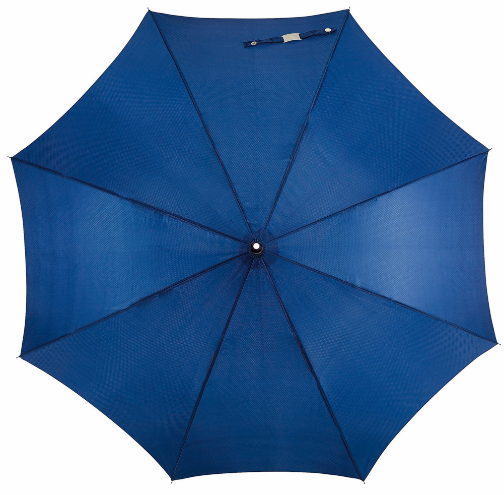 Automatyczny parasol JUBILEE. Aluminiowa laska, szyny z włókna szklanego, metalowe kolce, dopasowany kolorystycznie, gumowany, zaokrąglony uchwyt, poszycie z poliestru z pokrowcem o strukturze plastrów miodu, pasek spinający z zapięciem na zatrzask i metalową płytką na logo.