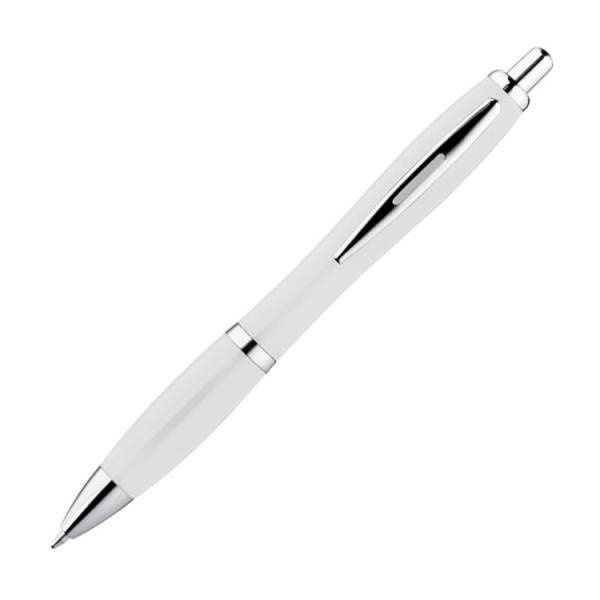 Długopis plastikowy wyposażony w system typu klik oraz niebieski wkład. Długopis z uchwytem dostępny jest w wielu wariantach kolorystycznych.
