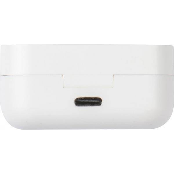 Słuchawki bezprzewodowe douszne, które można naładować dzięki panelowi słonecznemu znajdującemu się na obudowie. W zestawie znajduje się również zwykły kabelek do ładowania.