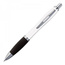 Plastikowy długopis z białym korpusem i kolorową gumką ułatwiającą trzymanie. Wyposażony w metalowy klips i duży wkład piszący na niebiesko. Długopis dostępny w bogatej gamie kolorystycznej.