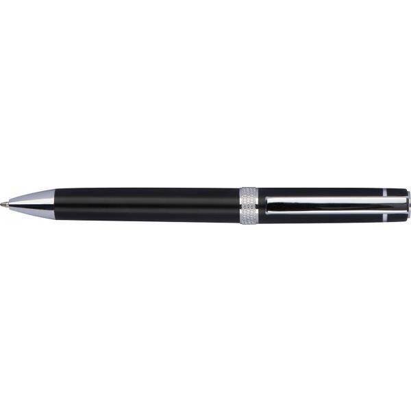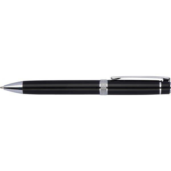 Długopis metalowy typu twist z wkładem piszącym na niebiesko.