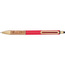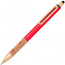 Metalowy długopis ze złotymi elementami i korkową strefą uchwytu.