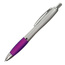 Długopis plastikowy z antypoślizgową gumką oraz z błyszczącymi elementami. Wyposażony w system typu kilk oraz wkład w kolorze niebieskim. Długopis dostępny w bogatej gamie kolorystycznej.