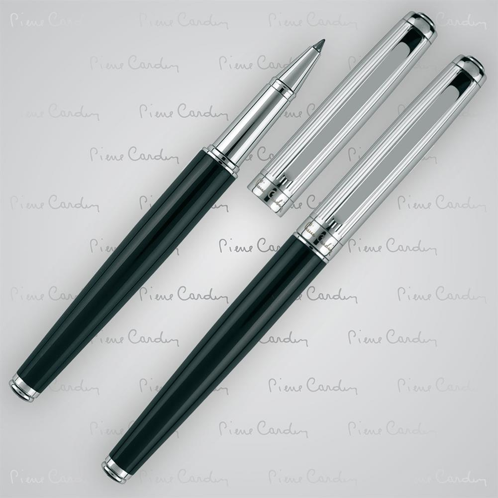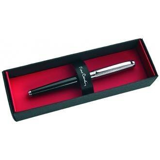 Pióro kulkowe z czarnym, lakierowanym korpusem i srebrnymi elementami. Wyposażone w wysokiej jakości niebieski wkład z końcówką 0,6 mm. W zestawie z wkładem zapasowym piszącym na czarno. Zapakowany w eleganckie pudełko prezentowe z certyfikatem autentyczności Pierre Cardin.