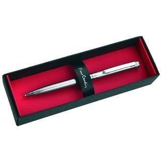 Wysokiej jakości metalowe pióro kulkowe z chromowanymi elementami pochodzące z kolekcji RENEE. Posiada niebieski wkład z końcówką 0,6 mm, zapewniającą płynne pisanie oraz dodatkowy wkład z czarnym atramentem. Pióro zapakowane w eleganckie pudełko prezentowe z certyfikatem autentyczności Pierre Cardin.