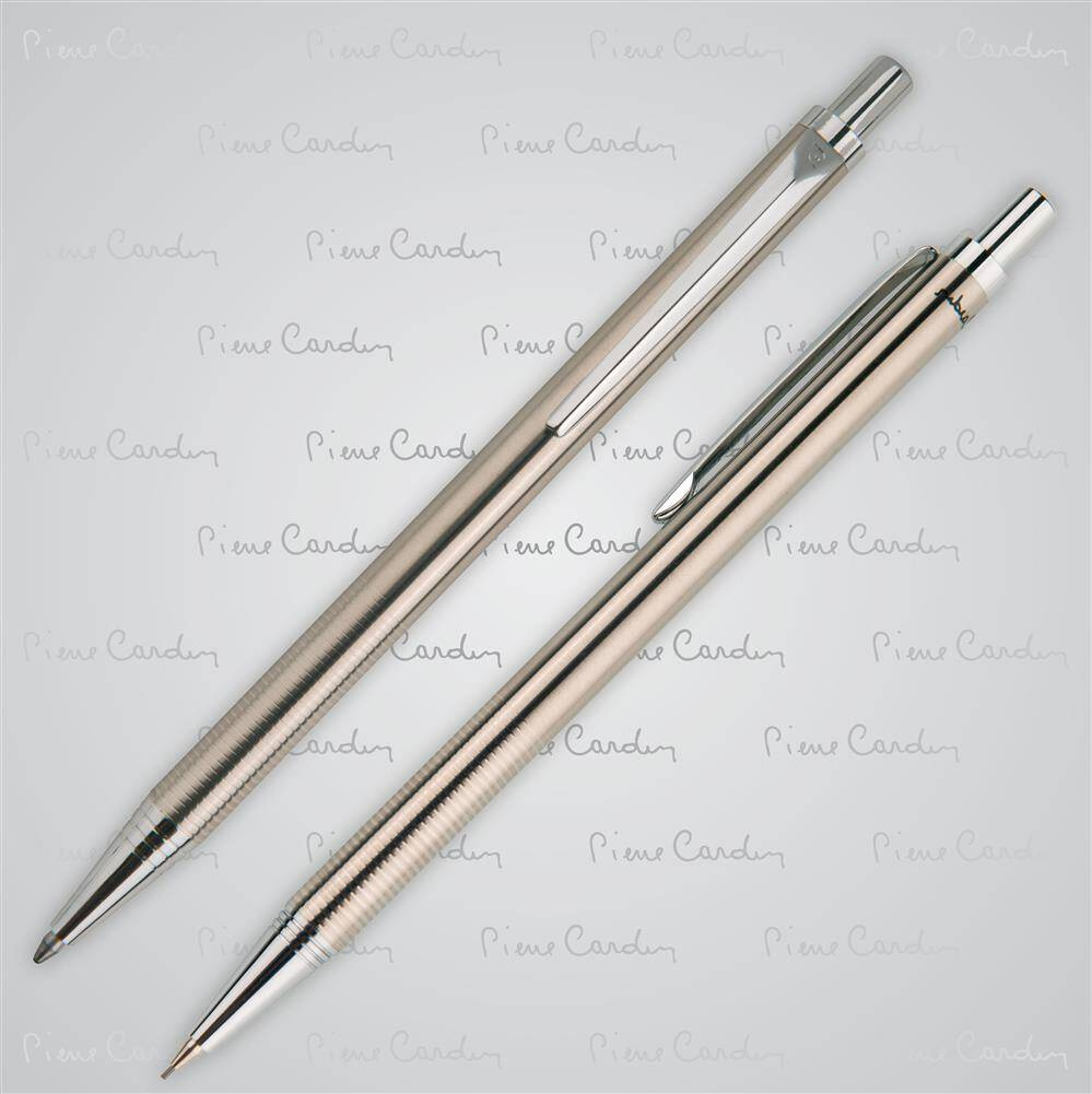 Całość zapakowana w papierowe etui z certyfikatem autentyczności Pierre Cardin.