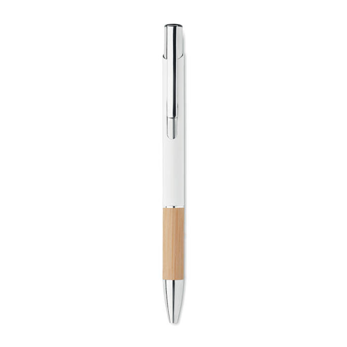 Przyciskany długopis z aluminium z bambusowym uchwytem.