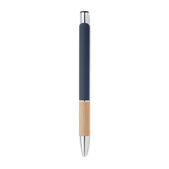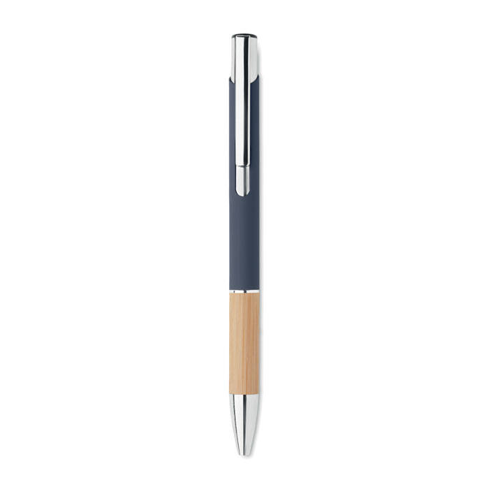Przyciskany długopis z aluminium z bambusowym uchwytem. Niebieski tusz.