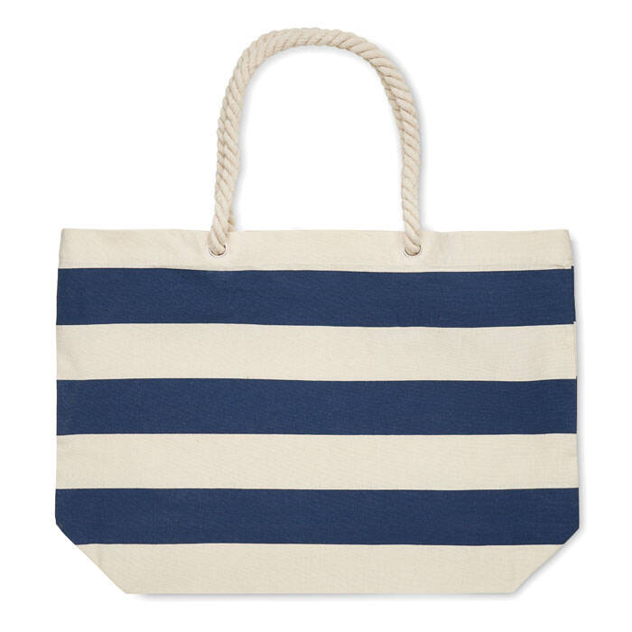 Bawełniana torba plażowa lub na zakupy w paski z uchwytem ze sznurka. 220 gr/m².