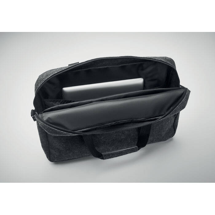 15-calowa torba na laptopa z filcu RPET z jedną główną przegrodą wewnętrzną i jedną zapinaną na zamek kieszenią przednią.