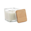 Zapachowa świeca woskowa na bazie roślin w kwadratowym szklanym pojemniku z bambusową pokrywką. 50 gr. Czas palenia: 8 godzin. Biały (06) zapach waniliowy, żółty (08) zapach cytrynowy, pomarańczowy (10) zapach pomarańczowy, zielony (48) zapach jabłkowy.