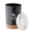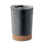 Zewnętrzna podwójna ścianka ze stali nierdzewnej i wewnętrzna strona z PP. Korkowa podstawka i przesuwane otwarcie do picia.