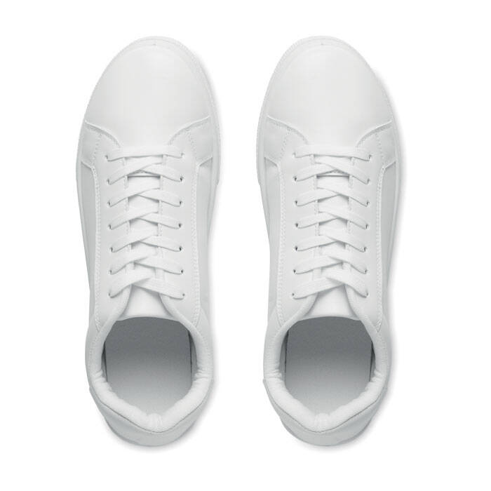 Lekkie trampki z PU z gumową podeszwą zewnętrzną i poliestrowymi sznurowadłami. Rozmiar: 46. Zapakowane w białe pudełku na buty. Trampki są dostarczane ze sznurowadłami przewleczonymi tylko przez 2 pierwsze oczka.