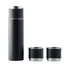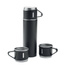 Zestaw z termosem o podwójnych ściankach izolowanych próżniowo ze stali nierdzewnej, ze szczelną zakrętką i 2 dodatkowymi kubkami. Pojemność: termos - 420 ml, kubek - 150 ml.