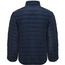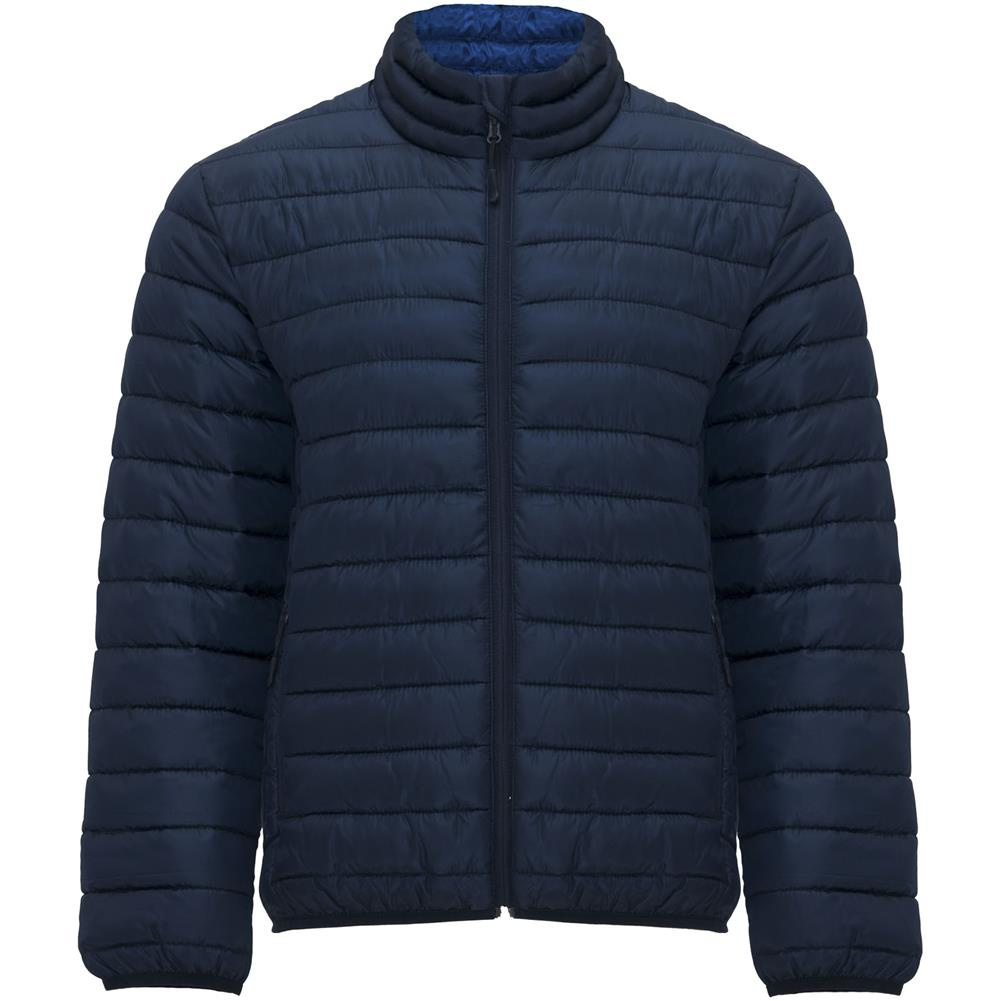 Męska kurtka pikowana z wypełnieniem imitującym w dotyku pierze. Odwrócone zamki błyskawiczne z dopasowanym ochraniaczem podbródka i ściągaczem. Dwie przednie kieszenie z zamkami błyskawicznymi. Dopasowana elastyczna lamówka w kołnierzu, mankietach i u dołu. Kontrastowa podszewka wewnętrzna. W zestawie torba transportowa. Lekka i składana odzież. Usuwalna metka. Wodoodporna. Wiatroszczelna.