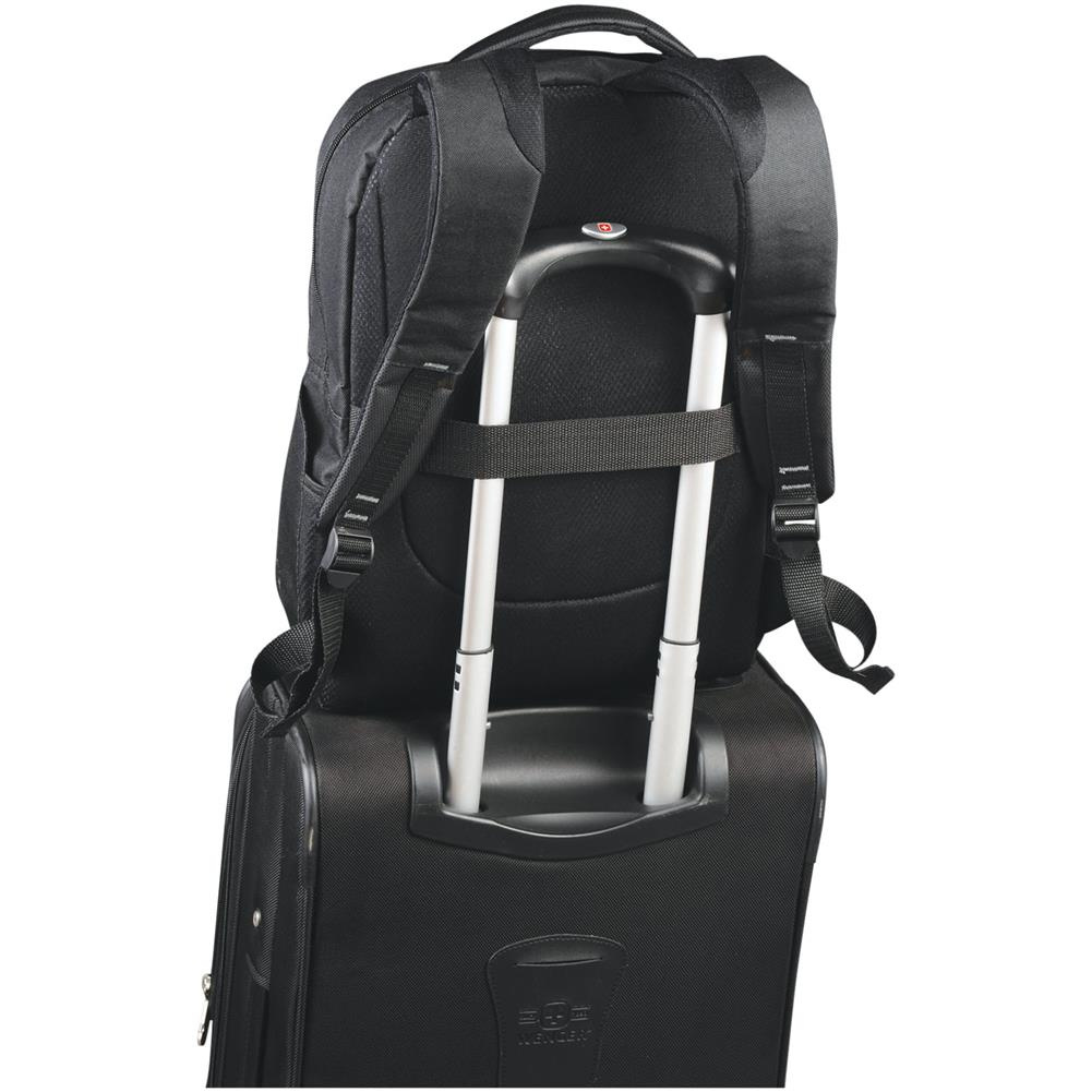 Główny przedział zapinany na zamek pomieści laptop 15" i dodatkowo tablet w oddzielnej wyściełanej kieszeni.