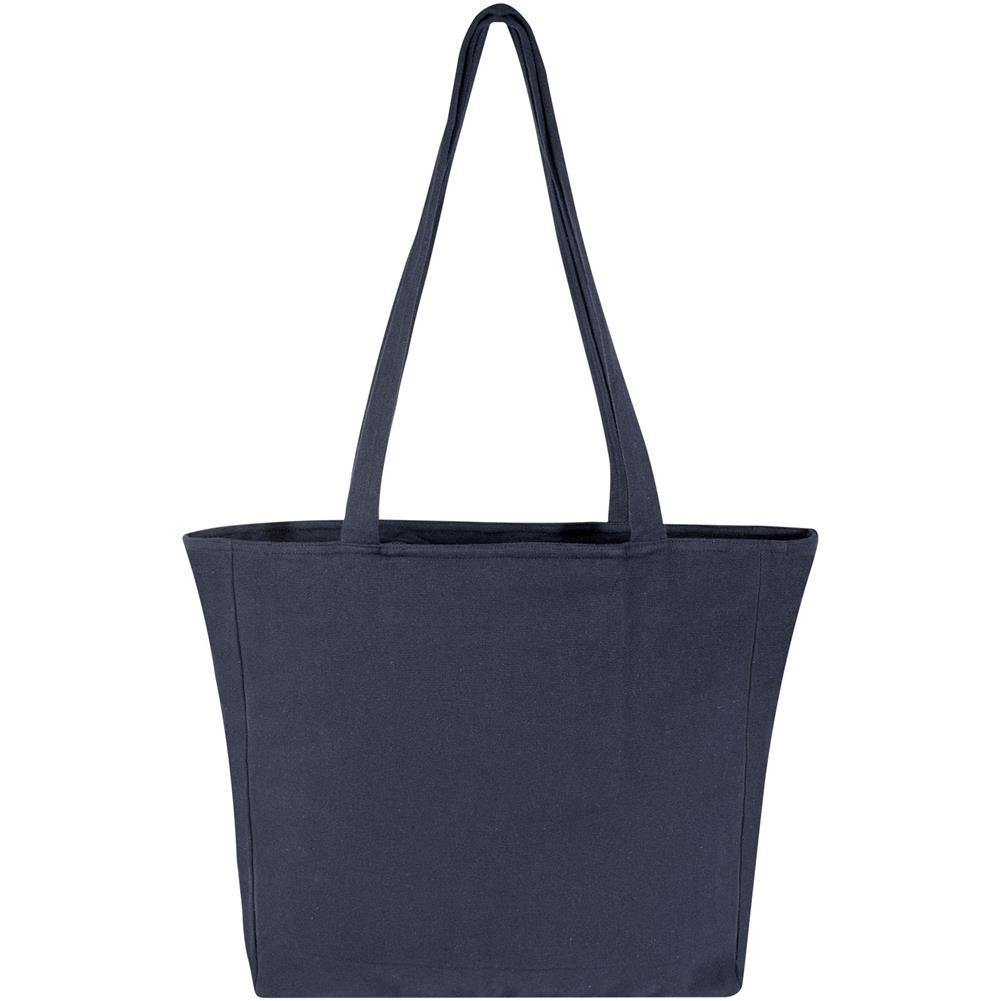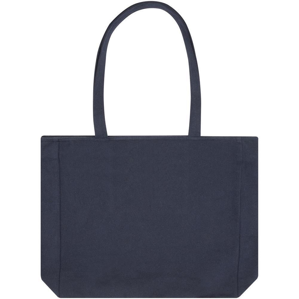 Dzięki dużej pojemności torba na zakupy Weekender z materiału z recyklingu idealnie nadaje się do zabrania na krótką wycieczkę. Torba na zakupy jest zapinana na zamek błyskawiczny na całej długości, co zapewnia ochronę przedmiotów w środku. W głównej komorze znajduje się również mała kieszonka zapinana na zamek błyskawiczny przeznaczona do przechowywania mniejszych przedmiotów. Torba na zakupy zawiera włókna Cyclo® pochodzące z recyklingu, w przypadku których wykorzystano wstępnie posortowane odpady, które mają wpływ na kolor przędzy. Włókna te nie tylko zmniejszają zapotrzebowanie na surowce pierwotne, ale także są przejawem zaangażowania w tworzenie obiegu zamkniętego, stanowiąc realny przykład zmniejszania ilości odpadów i promując gospodarkę w obiegu zamkniętym. Do każdej torby dołączony jest również znacznik Aware™. Ta innowacyjna funkcja pozwala użytkownikom prześledzić za pomocą kodu QR pochodzenie produktu i pokonaną przez niego drogę, zwiększając przejrzystość łańcucha dostaw i wspierając silniejszy związek między produktem a jego procesem produkcyjnym.